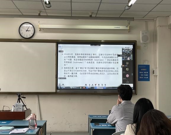 2022年4月7日星期四下午,人文学院邀请武汉大学哲学学院人文社科讲席教授陈波教授作了关于“如何肯定命题的假和否定命题的真--论究竟有没有否定事实”的学术讲座,讲座由付敏副教授主持。